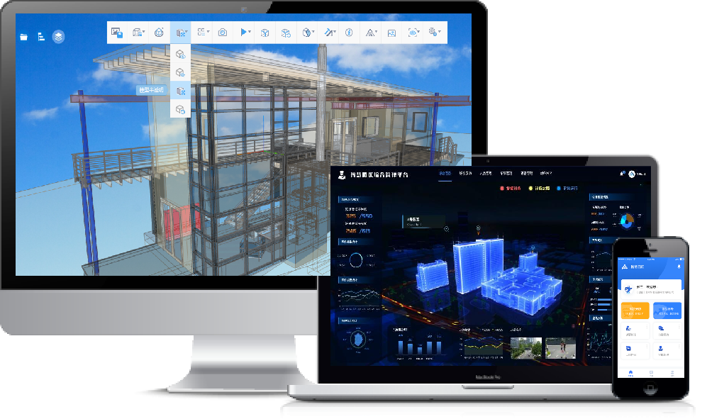 集成对接园区各类子系统,整合业务和运营模式,融合GIS、CAD、BIM、激光点云等等多种数据源,运用数字孪生技术对建筑(室内外)、道路、植被、水域、构件、地形等等园区全要素进行高拟真精准还原,为管理人员提供园区完整、清晰、明了的运营态势感知,对园区整体进行监控和宏观展示。